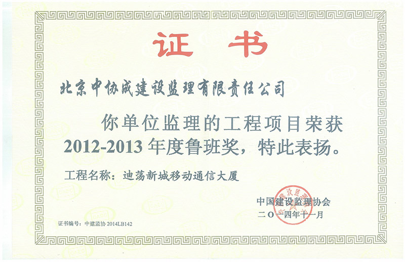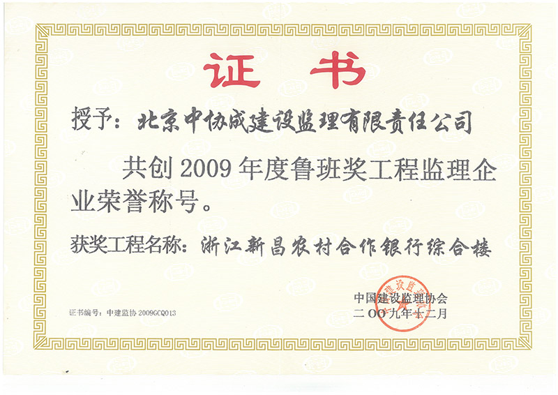 09年魯班獎證書-浙江新昌農(nóng)村合作銀行綜合樓