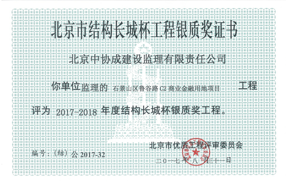 2017-2018石景山區(qū)魯谷路C2商業(yè)金融用地項目結(jié)構(gòu)長城杯銀質(zhì)獎