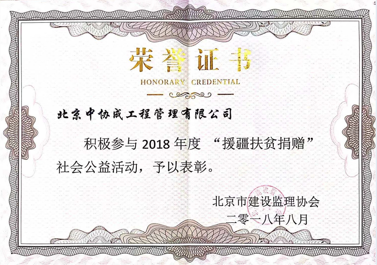 2018年度援疆扶貧捐贈(zèng)公益活動(dòng)榮譽(yù)證書(shū)