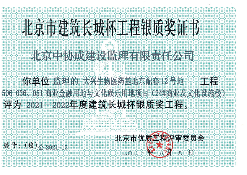 2021-2022年度建筑長城杯銀質(zhì)獎-大興生物醫(yī)藥基地東配套12號地商業(yè)金融用地與文化娛樂用地(24號商業(yè)及文化設(shè)施樓)