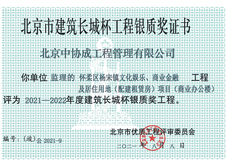 2021-2022年度建筑長城杯銀質獎-懷柔區(qū)楊宋鎮(zhèn)文化娛樂、商業(yè)金融及居住用地項目