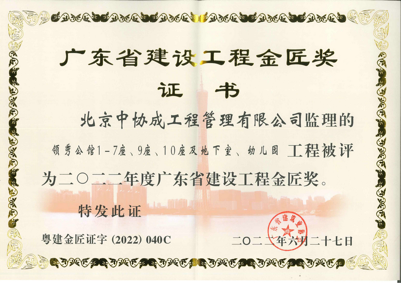 領(lǐng)秀公館1-7座等工程2022年度廣東省建設(shè)工程金匠獎(jiǎng)