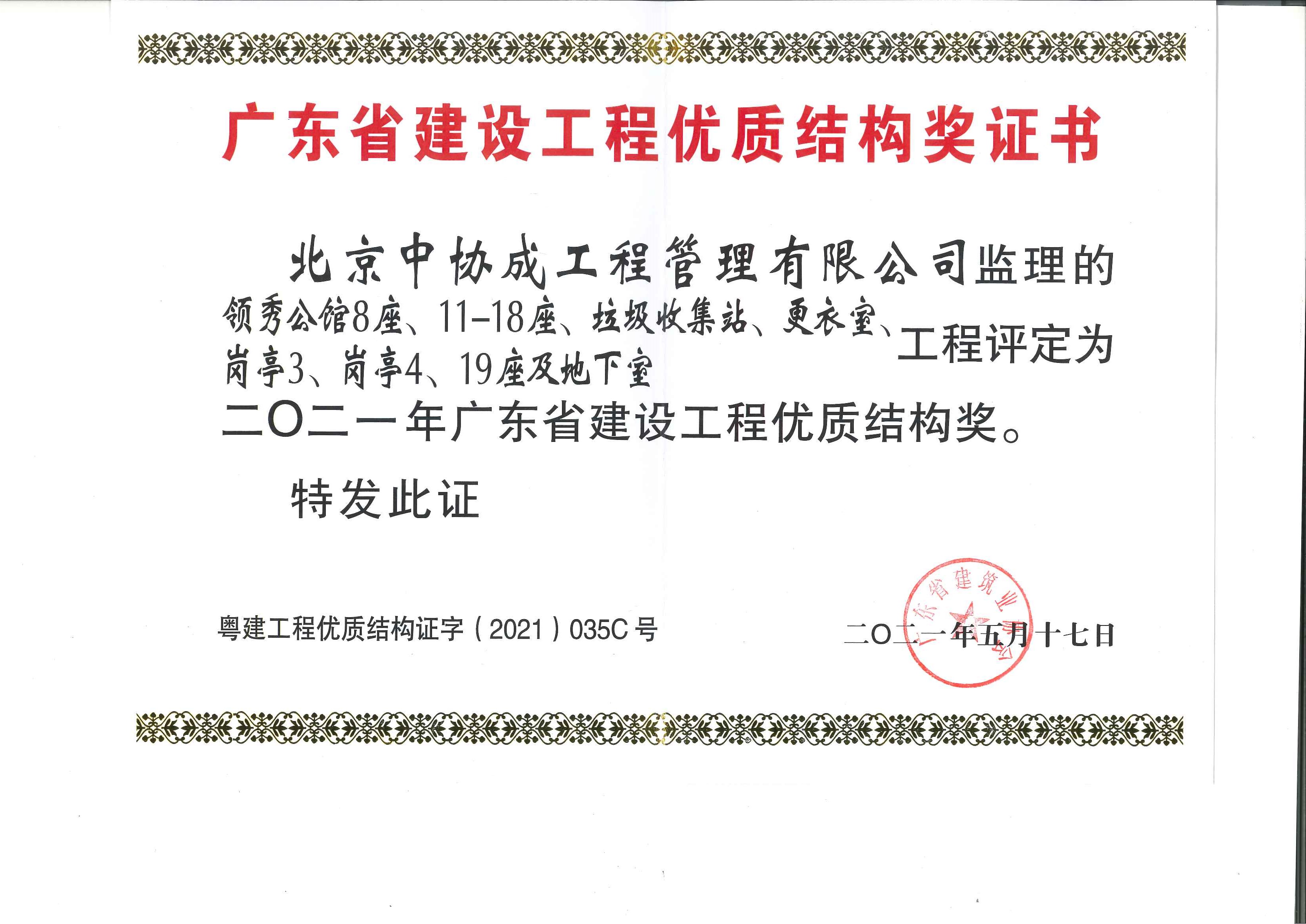 領(lǐng)秀公館8座等工程2021年廣東省建設(shè)工程優(yōu)質(zhì)結(jié)構(gòu)獎(jiǎng)