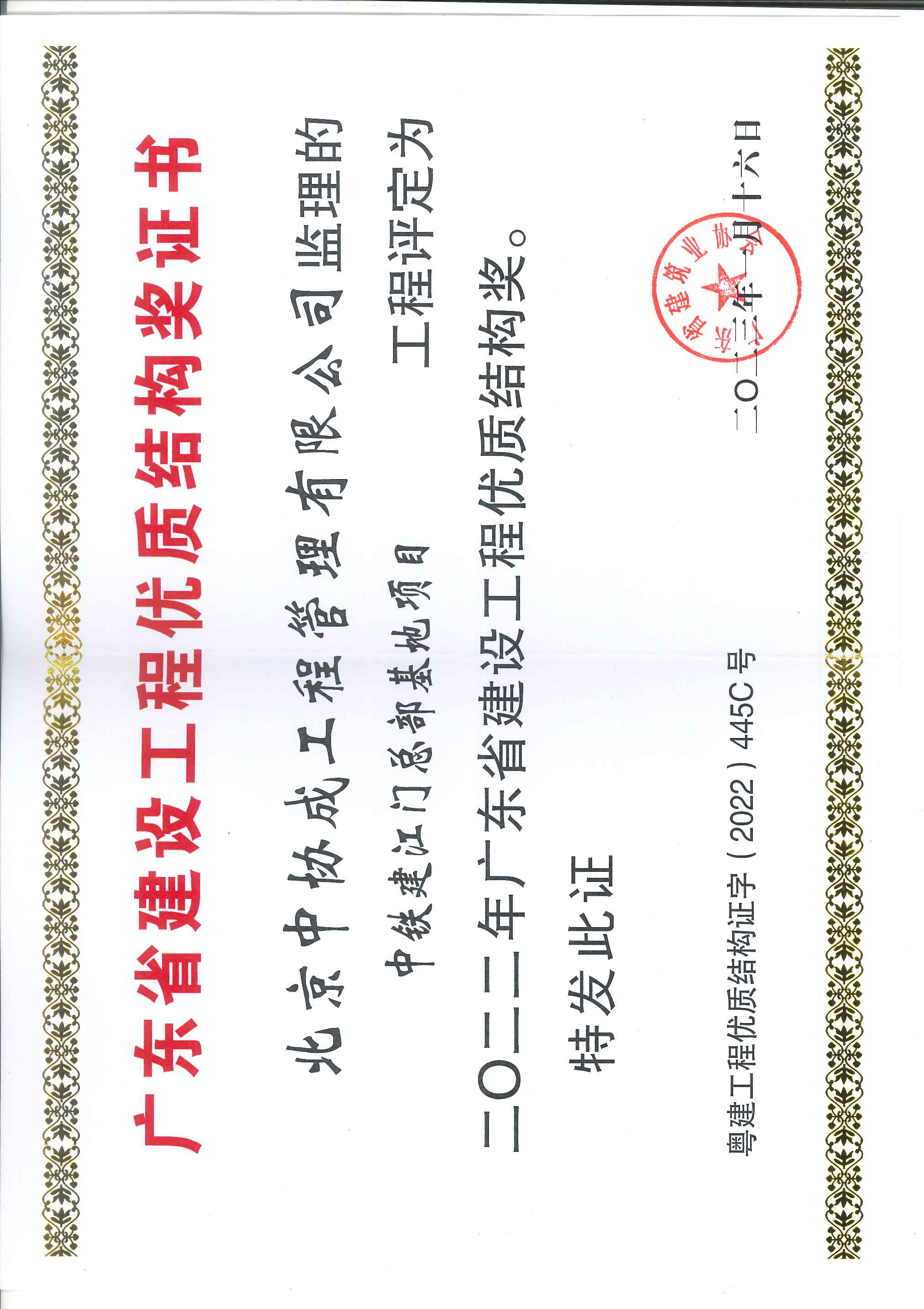 中鐵建江門總部基地項(xiàng)目2022年廣東省建設(shè)工程優(yōu)質(zhì)結(jié)構(gòu)獎(jiǎng)