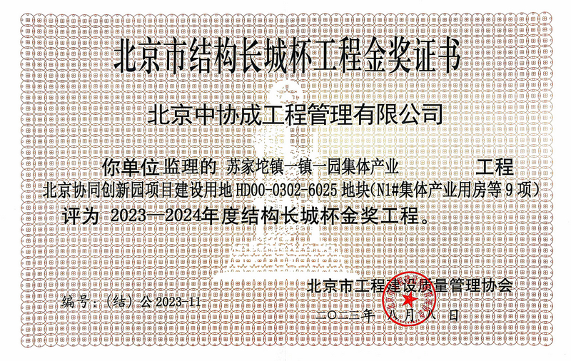 2023-2024年度結構長城杯金獎工程-蘇家坨鎮(zhèn)一鎮(zhèn)一園集體產(chǎn)業(yè)北京協(xié)同創(chuàng)新園項目建設用地HD00-0302-6025地塊工程