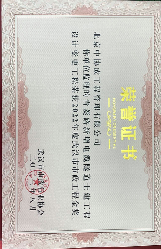 2022年度武漢市市政工程金獎-青菱路新增電纜隧道土建工程設(shè)計變更工程